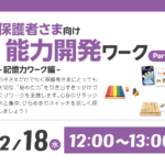 2026年2月5日 / 最終更新日時 : 2026年2月5日 eqwel お知らせ 🌈保護者さま向け能力開発ワークPart3~記憶力ワーク編 事前申込不要の無料オンラインセミナーです。 お子さまだけでなく保護者さまにとっても大切な”秘めた力”を引き出すきっかけづくりワークを実践します。心身のリラックスと集中、ひらめきのスイッチを楽しく押しましょう! 2/18( […]