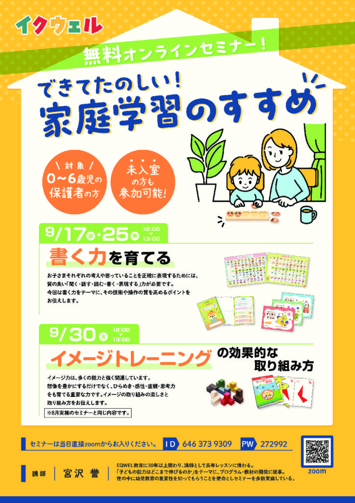 ZOOMでの無料オンラインセミナーのご案内です。ご自宅での学習を継続するためのヒントになるお話がたくさん聞けて、質問もできます!ぜひご参加ください😊