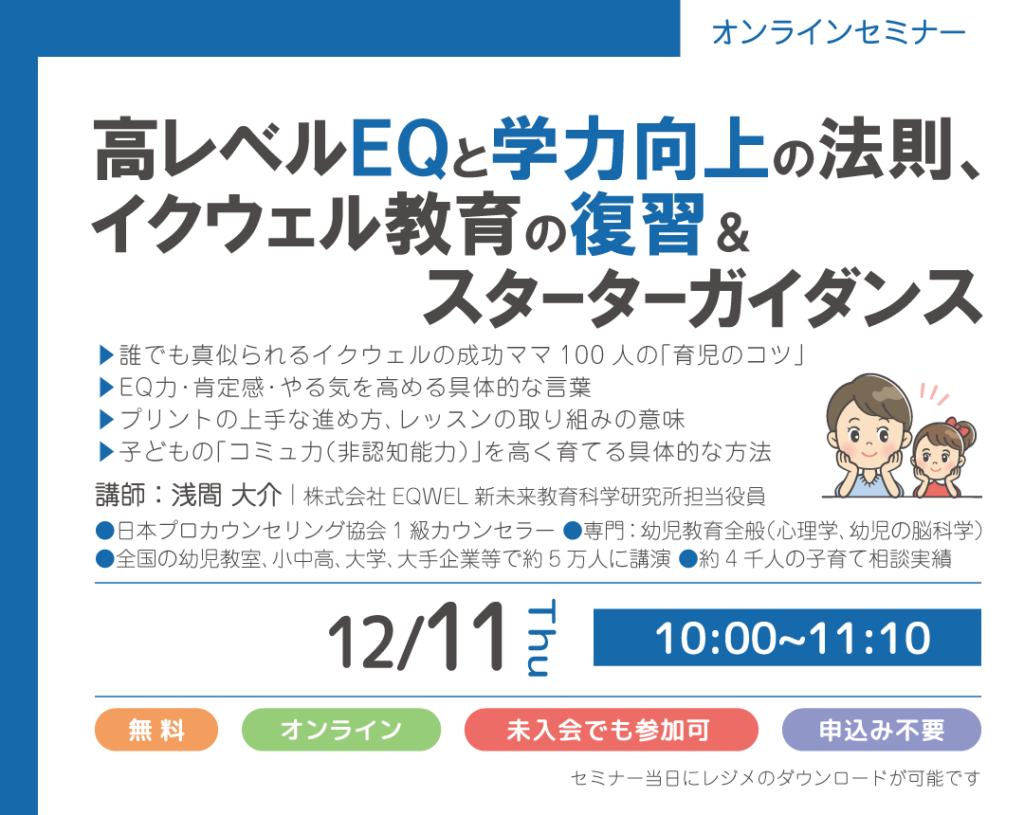 🌈高レベルEQと学力向上の法則、イクウェル教育の復習&スターターガイダンス(無料講座)