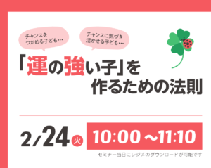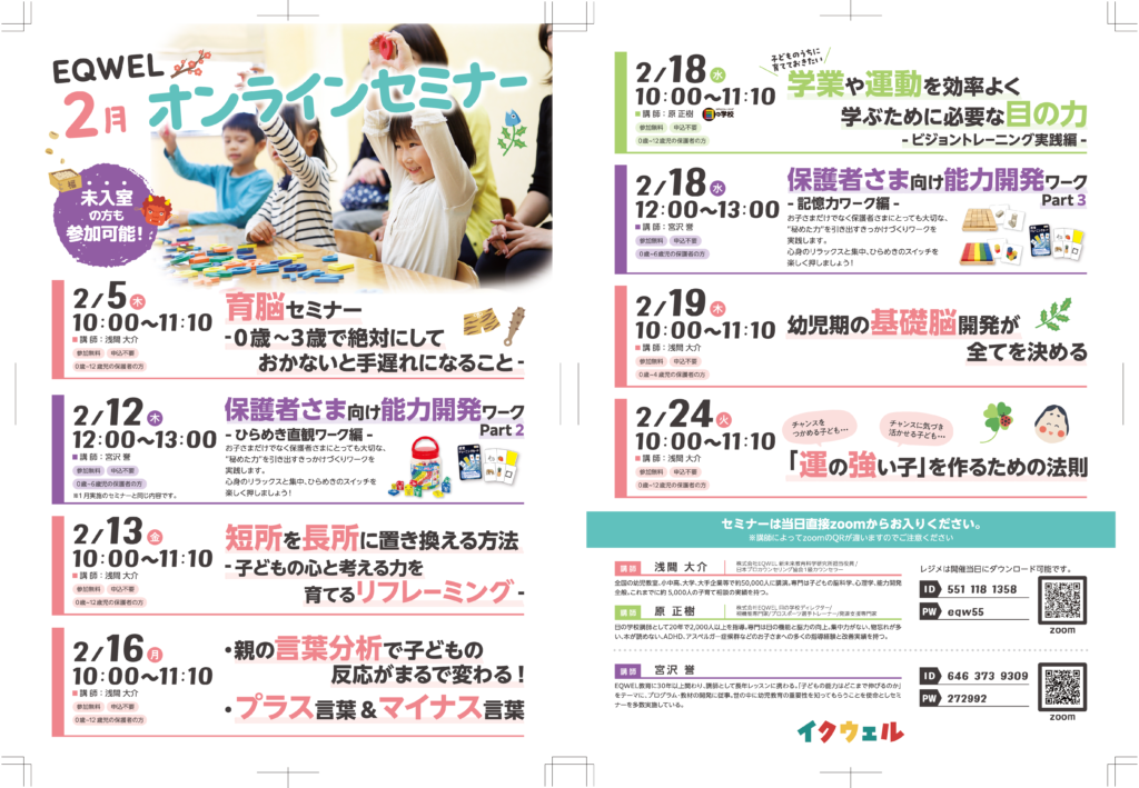 2026年2月5日 / 最終更新日時 : 2026年2月5日 eqwel お知らせ 🌈幼児期の基礎脳開発がすべてを決める 事前申込不要の無料オンラインセミナーです。 2/19(木)10:00~11:10 ZOOM ID 551 118 1358 / PW eqw55 \ 最新情報をチェック / FacebookXBlueskyHatenaCopy コメントを残す コメントをキャンセルメールアドレスが公開されることはありません。 ※ が付いている欄は必須項目ですコメント ※ 名前 ※ メール ※ サイト 上に表示された文字を入力してください。 Δ このサイトはスパムを低減するために Akismet を使っています。コメントデータの処理方法の詳細はこちらをご覧ください。